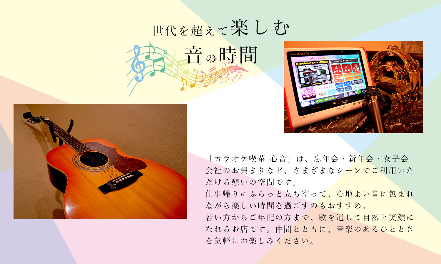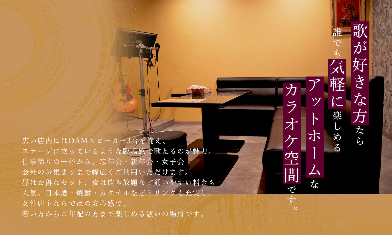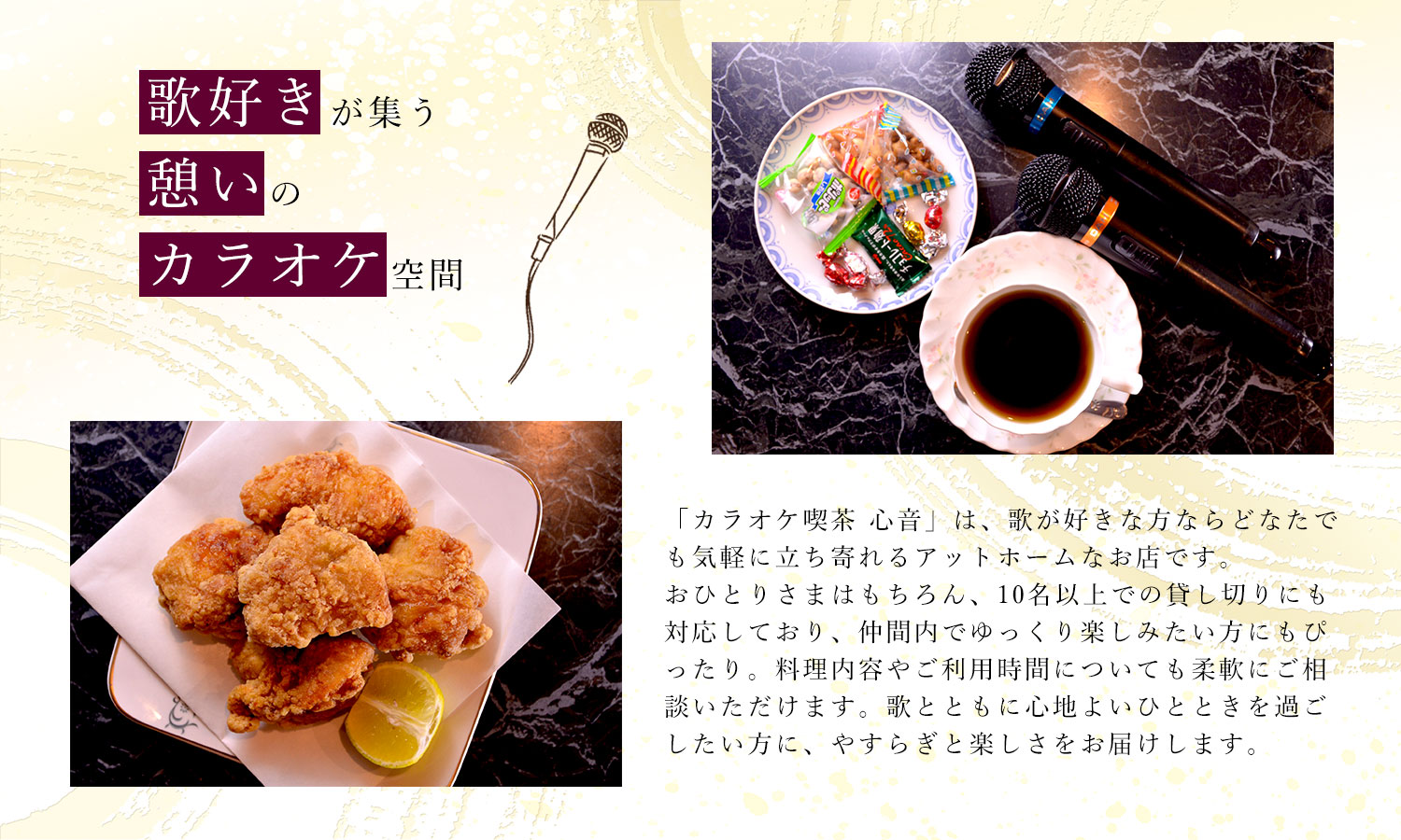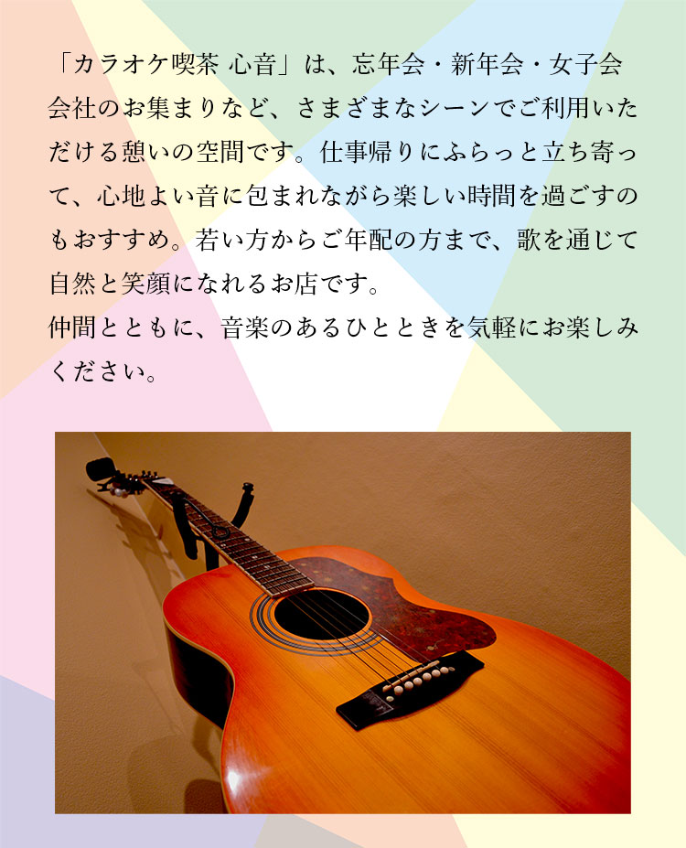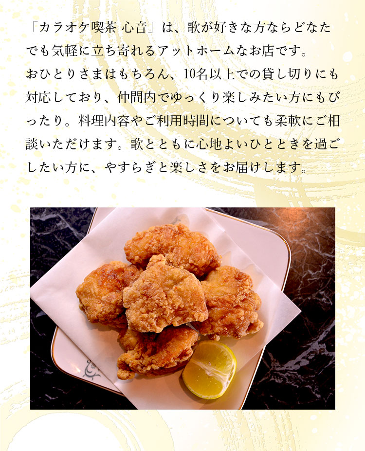 丸亀駅より徒歩5分のところにある、1曲100円のカラオケ喫茶「心音(kokone)」